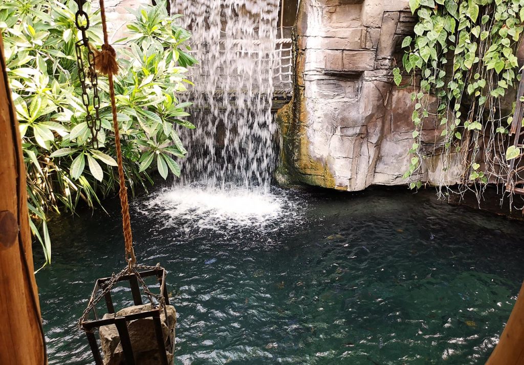 Die Tropenwelt mit Erlebnis-Aquarium ist in vier Themenbereiche: die Tropenwelt, die Höhlenwelt, das Giftschlangendorf und die Unterwasserwelt mit Riffhaien, majestätischen Rochen und bunten Korallenriffen aufgeteilt.
