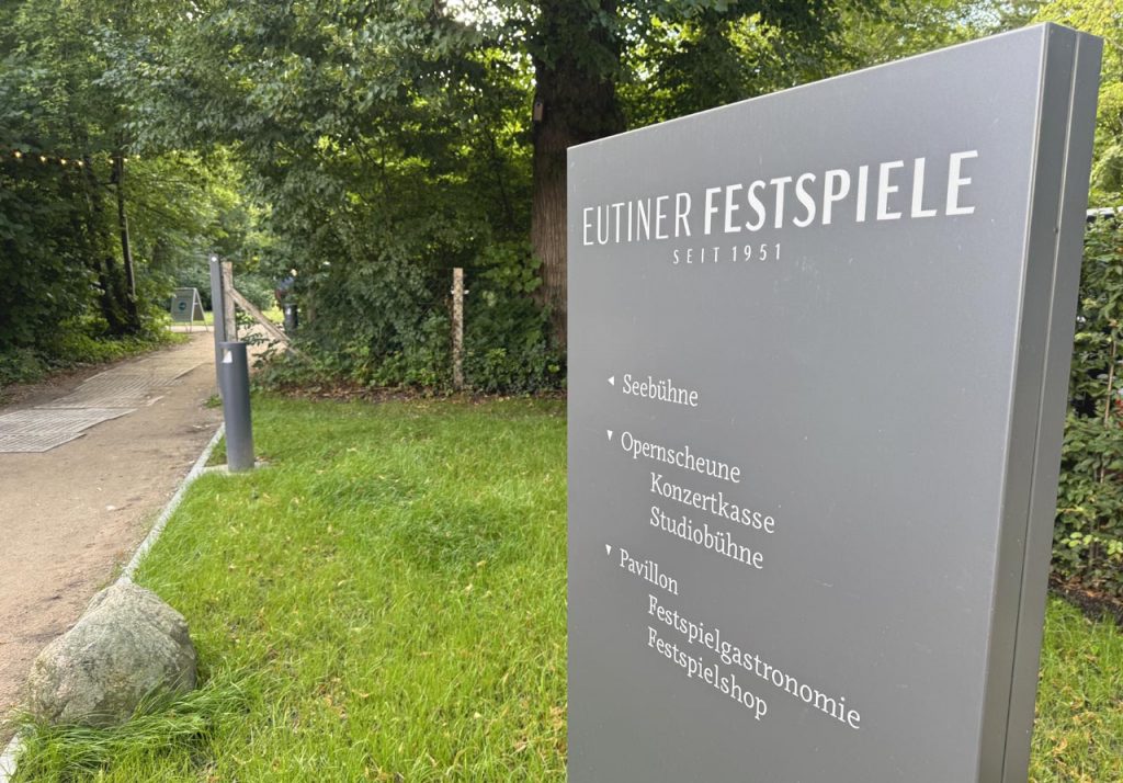 Schon beim Betreten des stimmungsvollen Festspielgeländes war die besondere Atmosphäre zu spüren: Die Naturkulisse am Großen Eutiner See, die untergehende Sonne über den Baumwipfeln und die Freilichtbühne, eingebettet zwischen Schlossgarten und Wasser, sorgten für eine ganz eigene Magie.