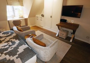 Die Unterkünfte im Hotel Duene sind hell, modern und hochwertig eingerichtet. Viel Holz, sanfte Farben und natürliche Materialien schaffen eine harmonische Verbindung zur umgebenden Dünenlandschaft. Die Gäste erwarten komfortable Zimmer, elegante Suiten, großzügige Appartements oder Ferienhäuser. Zur Ausstattung gehören teilweise Terrassen, bequeme Betten und großzügige Bäder, Bademäntel und Handtücher inklusive, kostenloses WLAN, Flachbild-TV, Nespresso-Maschine und Minibar.