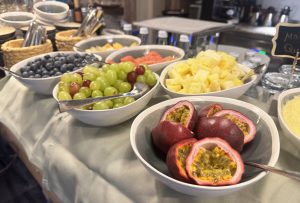 Der Tag beginnt im hauseigenen Restaurant Coast mit einem ausgedehnten Frühstück (8–12 Uhr). Serviert werden frische Köstlichkeiten, Kaffeespezialitäten und regionale Produkte. Das Buffet ist liebevoll angerichtet und mit Blick fürs Detail u.a. mit frischem Obst, Müsli, verschiedenen Brötchen und Joghurt.