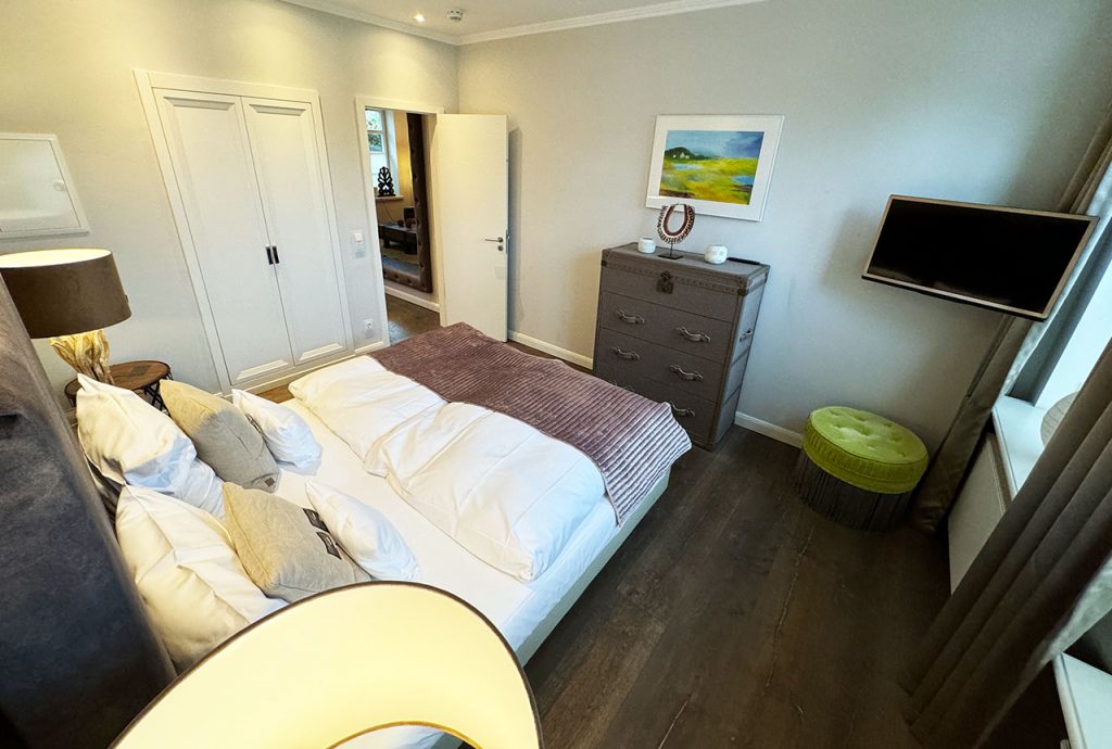 Wir bewohnten die Suite Nr. 26 und hatten zudem die Möglichkeit, in einige weitere Suiten zu blicken. Schon beim Betreten der Suiten spürt man, dass hier viel Wert auf Design und Komfort gelegt wird. Die Zimmer strahlen eine helle großzügige Gemütlichkeit aus, kombiniert mit hochwertigen Materialien, Kunstwerken und liebevollen Details. Warme Holzelemente und harmonische Farben schaffen eine Ruheoase, in der man sich sofort wohlfühlt. Die großen Fenster lassen viel Licht hinein und bieten einen wunderbaren Blick ins Grüne. Jedes Zimmer ist in hellen Farben gestaltet und mit modernem Interieur ausgestattet, das wunderbar mit künstlerischen Elementen kombiniert wird.