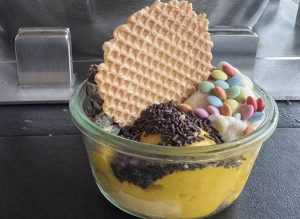 Zum Nachtisch gibt es leckerstes Eis. Bemerkenswert ist die große Auswahl an interessanten Eissorten (in Bioqualität) u.a. mit bunten Toppings. Zu empfehlen sind z.B. Mango, Zartbitter Chilli und Kokos.