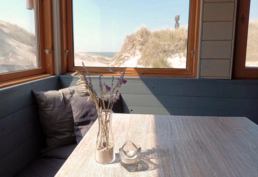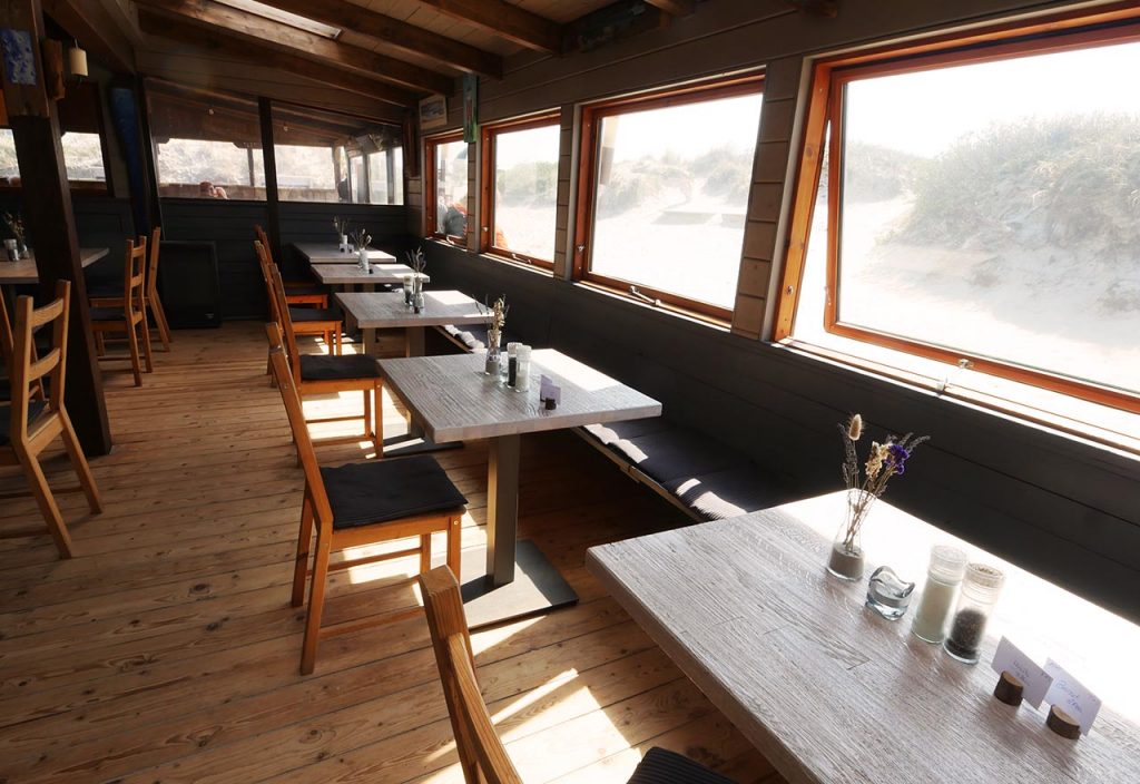 Ein Highlight des Restaurants ist die Aussicht. Das Restaurant befindet sich direkt am Strand und bietet durch die großen Fenster einen atemberaubenden Blick auf das Meer und die umliegenden Dünenlandschaften. Es ist wirklich ein wunderschöner Ort, um eine Mahlzeit zu genießen und den Sonnenuntergang zu beobachten.